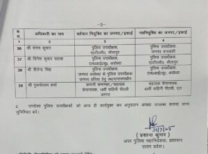 सहायक सेनानायक 48वीं वाहिनी PAC सीतापुर, प्रभात कुमार द्वितीय सहायक सेनानायक 48 वीं वाहिनी PAC सोनभद्र, रुद्र कुमार सिंह सहायक पुलिस आयुक्त कमिश्नरेट प्रयागराज, विजय प्रताप यादव सहायक पुलिस आयुक्त कमिश्नरेट कानपुर नगर, अनुज कुमार सिंह पुलिस उपाधीक्षक गोरखपुर, गवेन्द्र पाल गौतम सहायक सेनानायक 45वीं वाहिनी PAC अलीगढ़, अरविंद कुमार द्वितीय पुलिस उपाधीक्षक खीरी, आभा सिंह पुलिस उपाधीक्षक देवरिया, शिव प्रताप सिंह प्रथम पुलिस उपाधीक्षक महराजगंज बनाए गए।