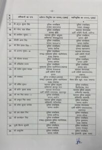 लखनऊ। गुरुवार को सीएम योगी आदित्यनाथ ने 39 डीएसपी के ट्रांसफर किए। जिसमें गौरव कुमार शर्मा DSP नागरिक उड्डयन एयरपोर्ट लखनऊ, हर्षिता गंगवार DSP तकनीकी सेवायें लखनऊ, सीमा यादव सहायक सेनानायक 9वीं वाहिनी PAC मुरादाबाद, शिव ठाकुर मण्डलाधिकारी आगरा बनाए गए, नेहा त्रिपाठी पुलिस उपाधीक्षक सीतापुर बनीं, सत्य प्रकाश शर्मा सहायक सेनानायक 8वीं वाहिनी PAC बरेली, ऋषिकान्त शुक्ला पुलिस उपाधीक्षक मैनपुरी, तेज बहादुर सिंह पुलिस उपाधीक्षक उन्नाव बने, धर्मेन्द्र कुमार सिंह सहायक सेनानायक 10वीं वाहिनी PAC बाराबंकी, शैलजा मिश्रा पुलिस उपाधीक्षक पीटीसी मुरादाबाद, विजय प्रताप यादव