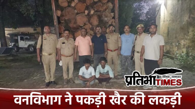 लखीमपुर खीरी:- वनविभाग ने पकड़ा खैर की लकड़ी से लदा हुआ ट्रैक।