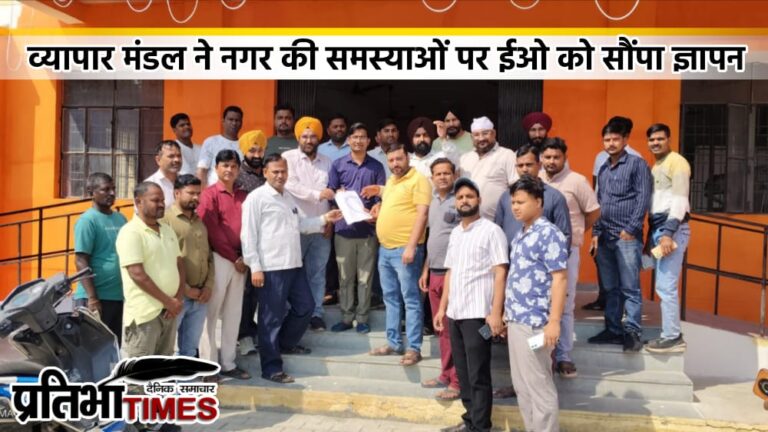 नगर की समस्याओं को लेकर व्यापार मंडल ने ईओ को सौंपा ज्ञापन।।