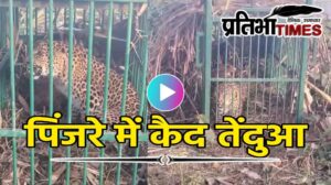 दहशत का पर्याय बना तेंदुआ आखिरकार वनविभाग द्वारा लगाए गए पिंजरे में हुआ कैद।।
