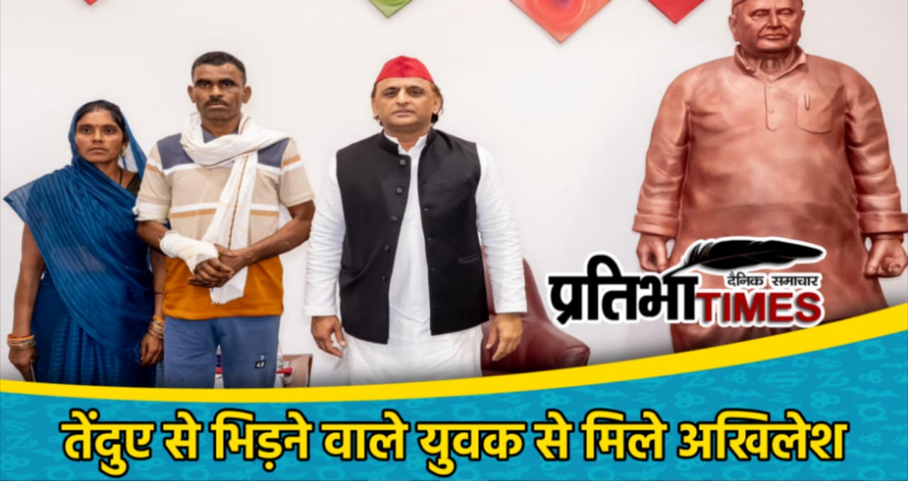 तेंदुए से भिड़ने वाले युवक से मिले अखिलेश यादव, दो लाख का चेक देकर बढ़ाया उत्साह।